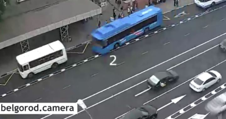 В Белгороде случилась авария на выделенной полосе для общественного транспорта. Там столкнулись автобус и «Волга».