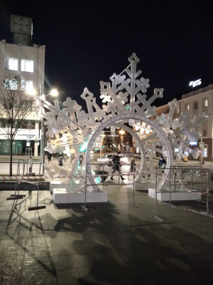 На Соборной площади областного центра уже появились двойные снежинки, русская тройка и летучий корабль