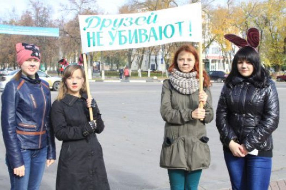 Вчера в Белгороде в рамках всероссийской акции против убийства животных впервые прошёл антимеховой марш «Животные — не одежда». С раскрашенными лицами и прикреплёнными ушами и хвостами, а также плакатами «Друзей не убивают», «Им жизнь или тебе шубу?», «Остановите бойню животных» зоозащитники прошли от входа в парк Победы до площадки парка.
