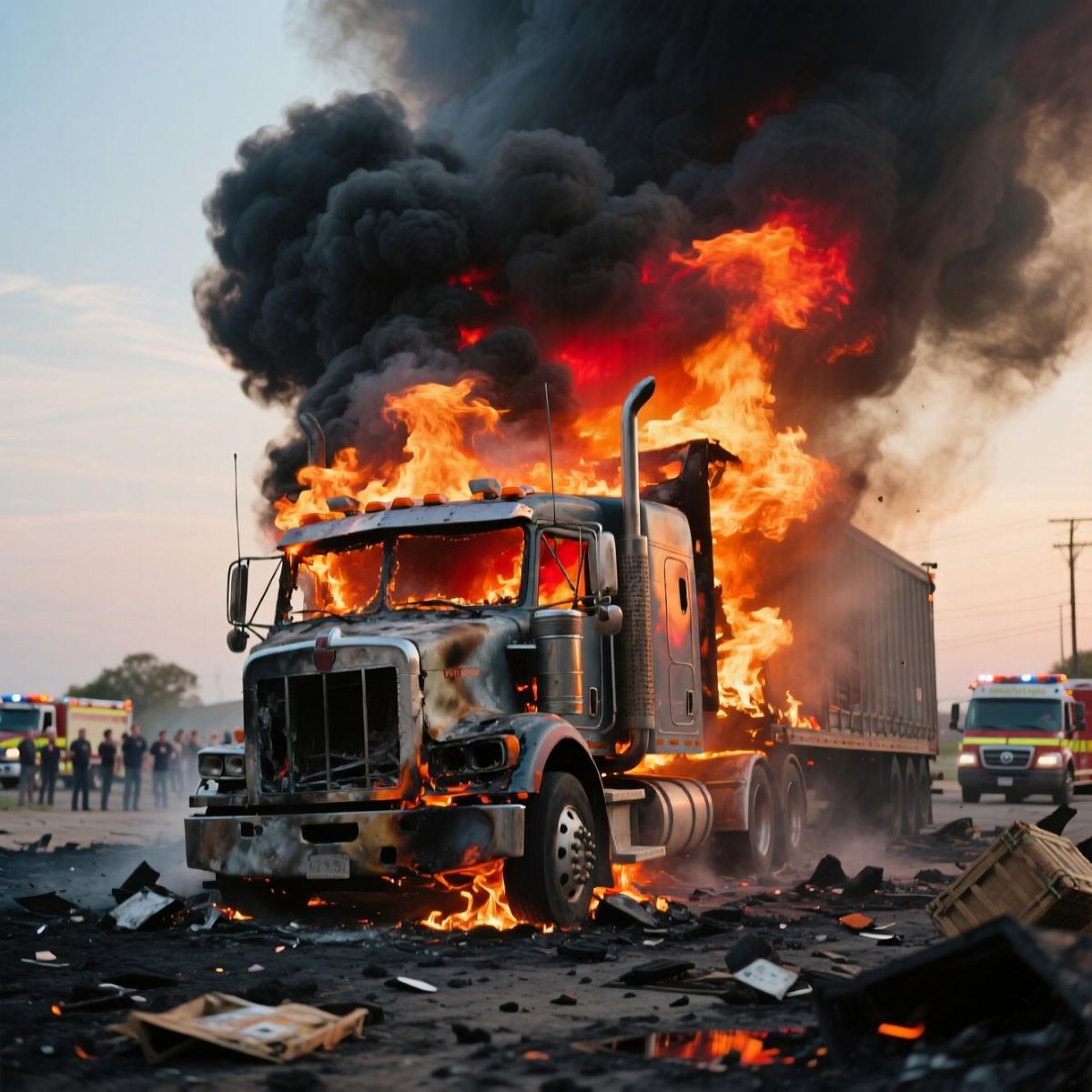 Вследствие детонации части беспилотника произошло возгорание грузового автомобиля. Пожарные оперативно прибыли на место и ликвидировали огонь.
