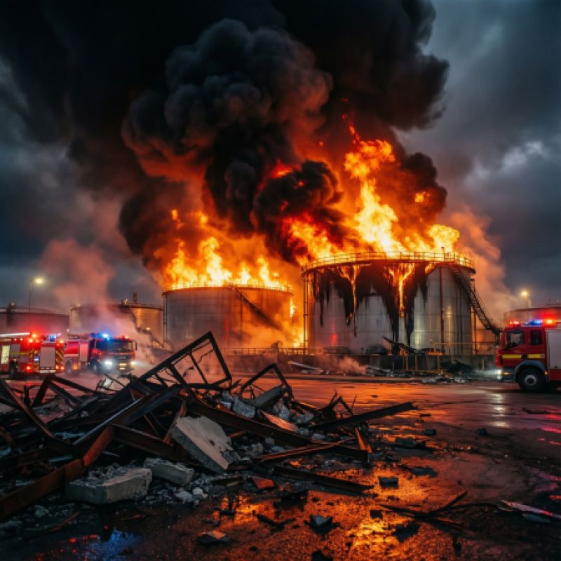 Взрыв привел к возгоранию нескольких резервуаров