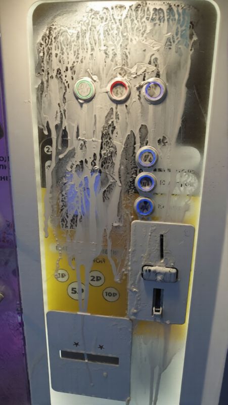 Неизвестный мужчина, действуя, по всей видимости, ночью или ранним утром, заливает механизмы монетоприемников и кнопки управления водораздатчиков суперклеем, а также покрывает корпуса аппаратов краской из баллончика