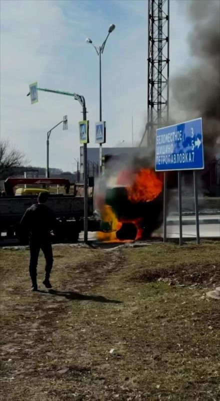 Пожар произошел на объездной дороге, соединяющей Новосадовый и Ротонду, вблизи поворота на село Беломестное в белгородской области. Загорелся грузовой автомобиль КамАЗ.