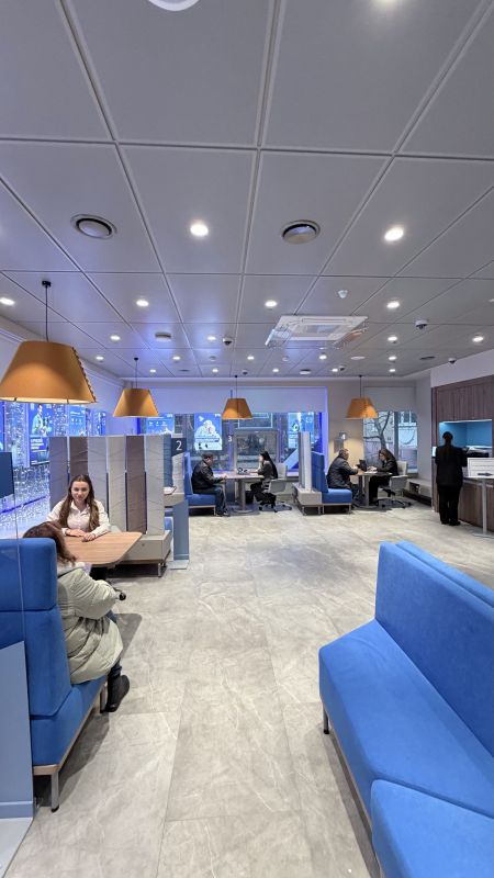 В отделении обслуживаются физические лица, также есть зона для сегмента «Привилегия». Здесь можно решить все финансовые вопросы: заказать кредитную или дебетовую карту, открыть вклад или накопительный счет, выбрать страховку, получить кредит на разные цели. Практически все операции автоматизированы и переведены в цифру, а сотрудники готовы дать консультацию по любым финансовым вопросам.