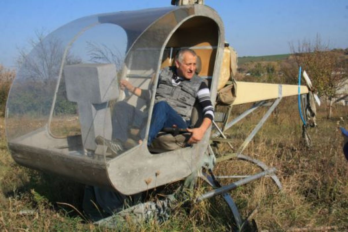 Осуществлять мечту он начал уже в зрелом возрасте и вместе с братом построил вертолёт. Кабина из фанеры и оргстекла, есть хвост, приборная панель, рычаги, ручки — всё как полагается.