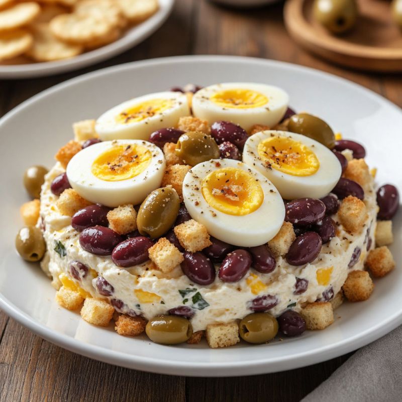 Соедините все ингредиенты, за исключением сухариков (их нужно добавлять непосредственно перед подачей на стол, чтобы они оставались хрустящими) и перемешайте.