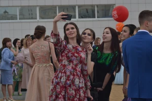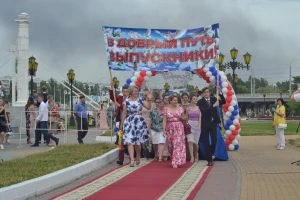 Более 1 700 одиннадцатиклассников собрались у спорткомплекса Светланы Хоркиной 23 июня. Выпускники в нарядных костюмах и платьях ушли во взрослую жизнь по красной ковровой дорожке вместе с классными руководителями и директорами школ.