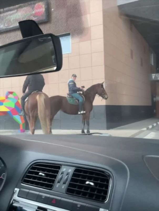 По словам очевидцев, двое всадников неспешно проехали по дороге к пункту выдачи заказов. Появление такого экологичного транспорта в месте, предназначенном для автомобилей, не осталось без внимания пользователей сети. Видео разнеслось по многочисленным пабликам.