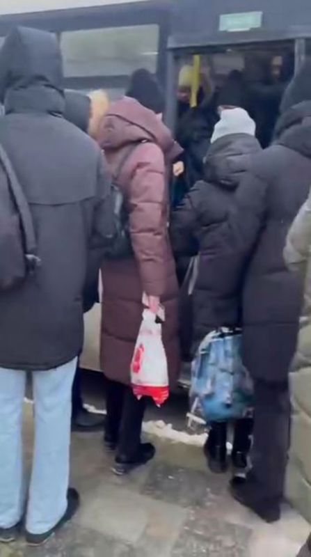 Люди не могу влезть в переполненные автобусы, как в Советском Союзе