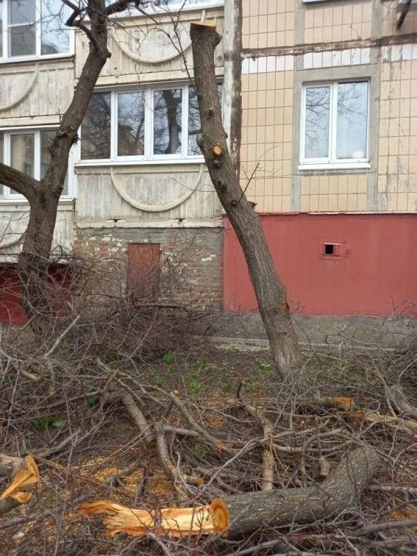 Во дворе дома № 6 по улице Буденного в Белгороде начали вырубать деревья. Местные жители встретили это решение без энтузиазма — и не только из-за потери зелени. По их словам, абрикосы не только радовали глаз и давали урожай, но и выполняли защитную функцию во время обстрелов.