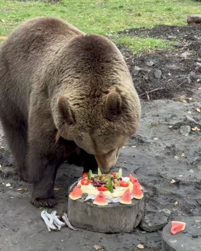По словам сотрудников, в этом году медведицы вели себя образцово. Они с готовностью вышли на зов смотрителей и с энтузиазмом принялись за специально приготовленные для них торты.