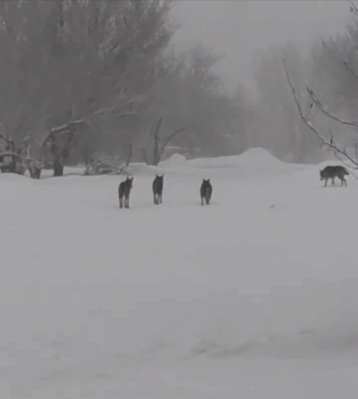 Местные жители сняли на видео стаю из четырёх хищников, бегающих на открытой местности в селе Пятницкое