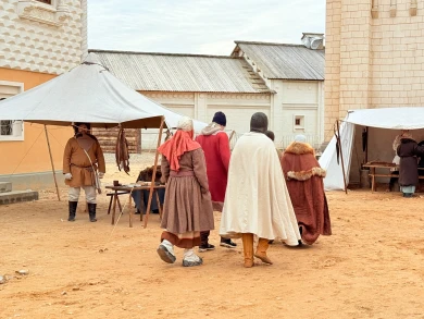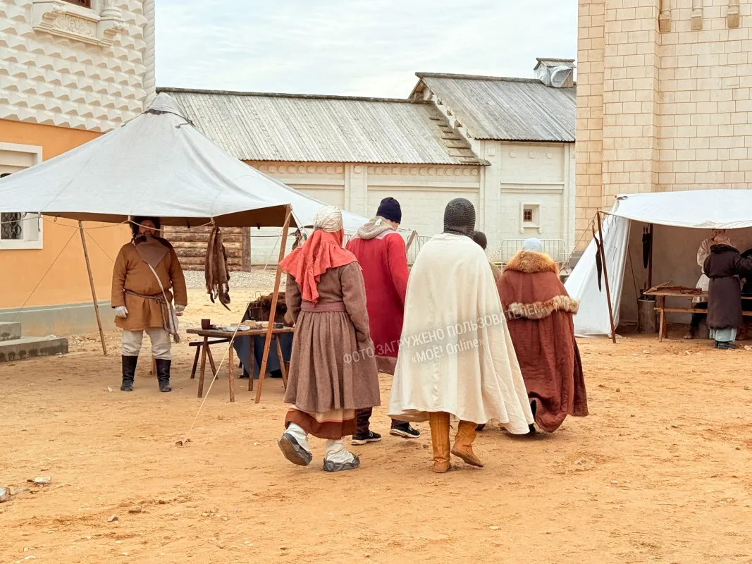Мы приехали на обзорную экскурсию, записывались заранее, на сайте кинопарка. Поначалу ты в общем-то не понимаешь, что происходит: как будто попал внутрь кинофильма — можно смотреть трогать, участвовать, при этом все происходит по своему сценарию. Несколько веков соединились на Соборной площади Кремля: идет бойкая «торговля» — меха, свечи, специи настоящие. Готовится еда на разведенном огне, кто-то спит прямо на лавке, укрывшись севрюжкой. А тут и бой на мечах, и балалаечники теленькают, в общем, дым коромыслом. Через какой-то квартал — купеческая Москва. Александр Сергеич чинно ходит, постукивая тростью по мостовой. Барышни шуршат кринолинами. Кто-то вообще из трактира выкатывается… Еще дальше Москва 40-х и Рейхстаг… Территория огромная, больше 100 уникальных локаций — и это только первая очередь открылась, скоро здесь будет самый масштабный кинопарк в мире.