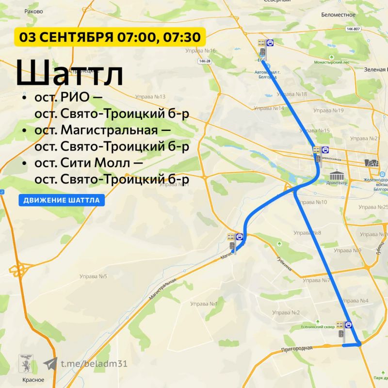 3 сентября по Белгороду пустят бесплатные шаттлы. Об этом сообщили в мэрии.
