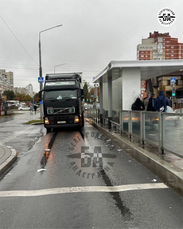 В Белгороде случилось необычное ДТП, которое может обернуться километровой пробкой на Харгоре. Грузовик не вписался в дорожную полосу.