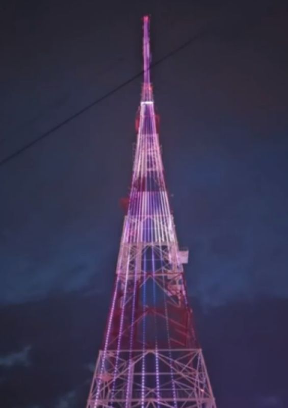 В Белгороде телевышка окрасилась в необычный для себя цвет. Вчера она засияла фиолетовыми красками.