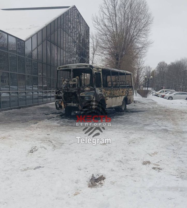 Фото последствий происшествия опубликовал телеграм-канал «Жесть Белгород. В МЧС сообщили, что тревожное сообщение поступило в службу спасения в 6:52. На место сразу выехали пожарные. Они потушили ПАЗ.