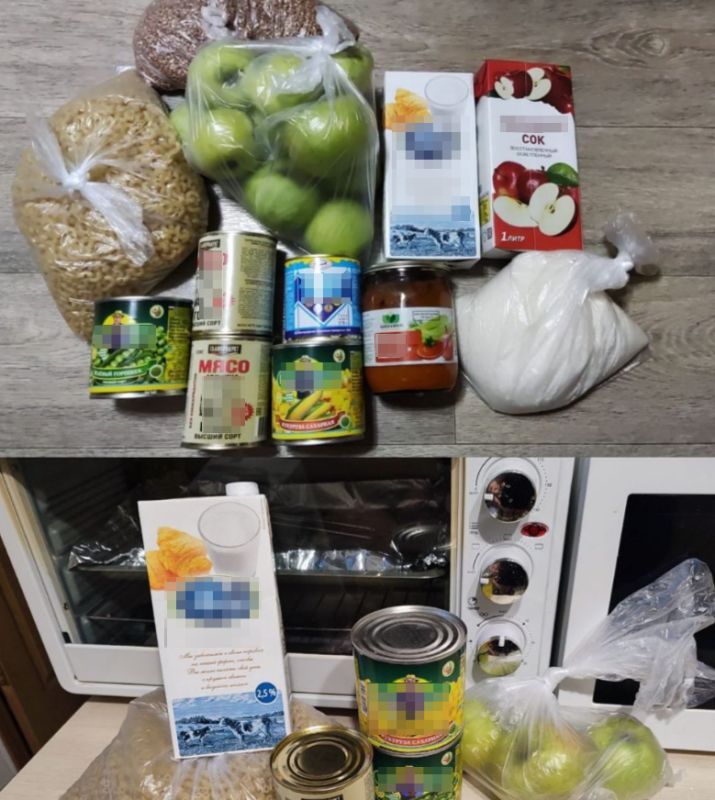 По словам автора обоих снимков, детям из школ № 36, 38, 39 и 40 выдали неплохой набор продуктов: по пакету гречки, сахара, две банки тушенки, кабачковую икру, сгущенку, консервированные горошек и кукурузу, молоко, макароны и яблоки. В школе № 1 получили пакет с тремя яблоками, макароны, молоко и по банке кукурузы, горошка и тушенки. Автор поста заподозрила, что школа могла сократить состав пайков, объев детей.