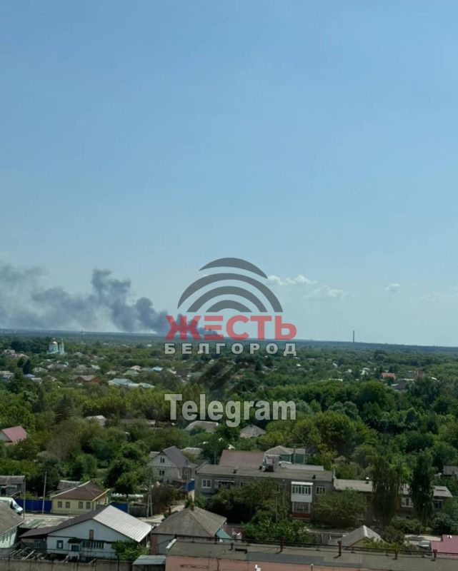 В Белгородской области над стоянкой большегрузов поднялся огромный столб черного дыма. Фото с места событий опубликовал телеграм-канал «Жесть Белгород».