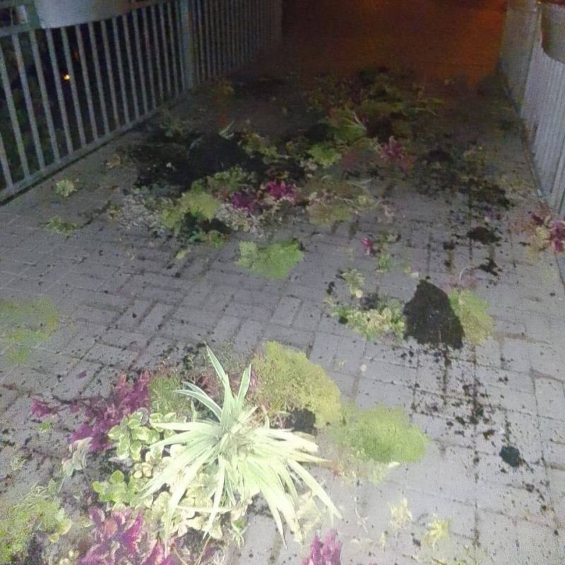 По данным ведомства, неизвестные орудовали в парке Победы в ночь на субботу. Они вырвали с корнями растения, которые находились в подвесных кашпо, и разбросали цветы по дороге. В общей сложности пострадали 10 переносных цветников.