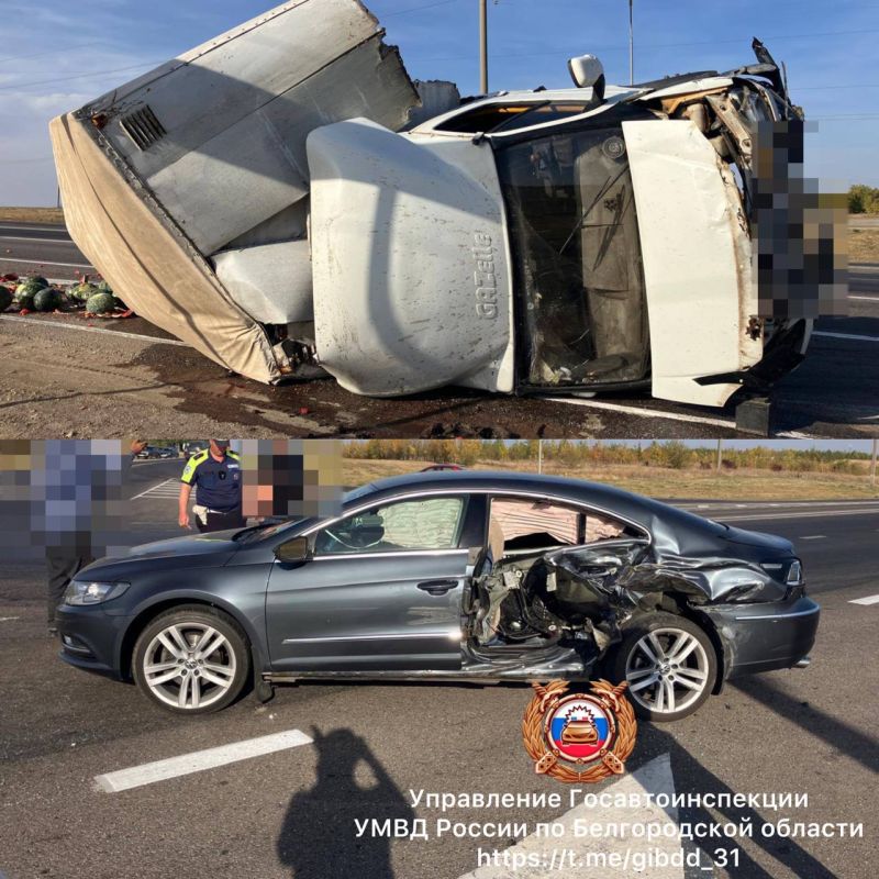 В Белгородской области легковушка перевернула грузовик с арбузами