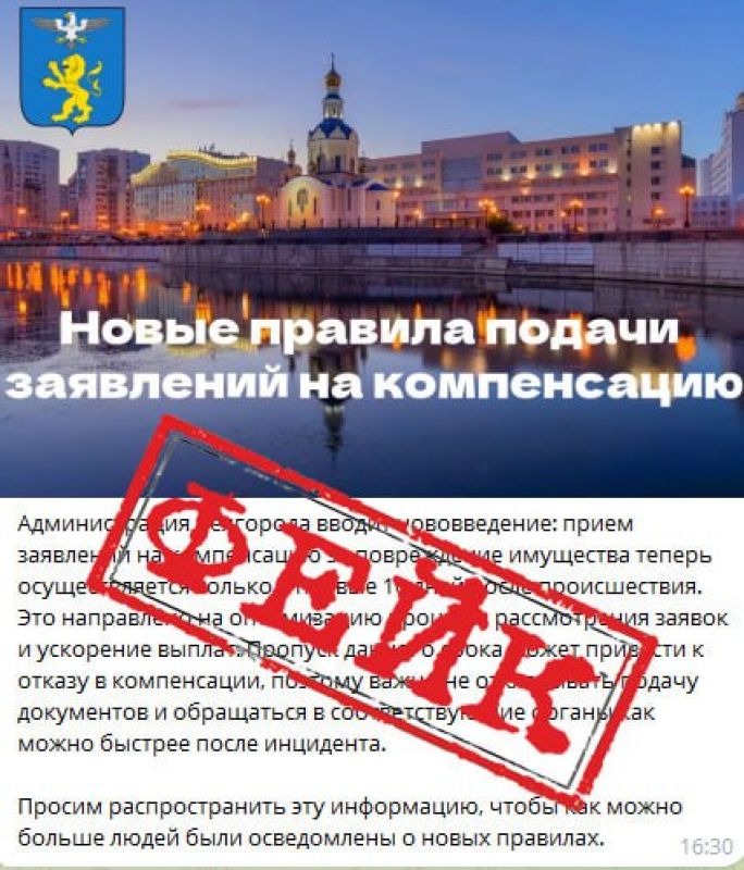 В Белгороде запустили фейк о якобы новых правилах подачи заявлений на компенсации. Пост опубликовали от имени городской администрации.
