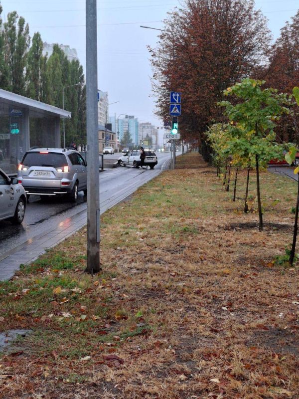 В Белгороде автомобиль влетел в бордюр и парализовал движение транспорта на злополучной улице Щорса. Видео с места событий опубликовал телеграм-канал «Авто Блэтгород».