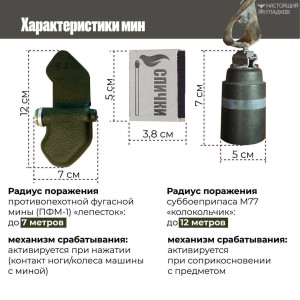 По словам главы региона, населенный пункты, расположенные неподалеку от границы, продолжают забрасывать «лепестками» и «колокольчиками». Суббоеприпасы оставляют с помощью дронов. Механизм поражения достигает 7-12 метров. Мины активируются от соприкосновения, либо от контакта с ногой человека или колесом автомобиля.