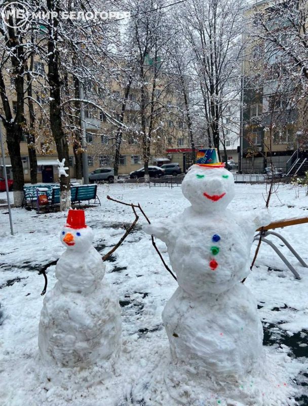 В Белгороде появились первые снеговики. Фото с места событий опубликовал телеграм-канал «Жесть Белгород».