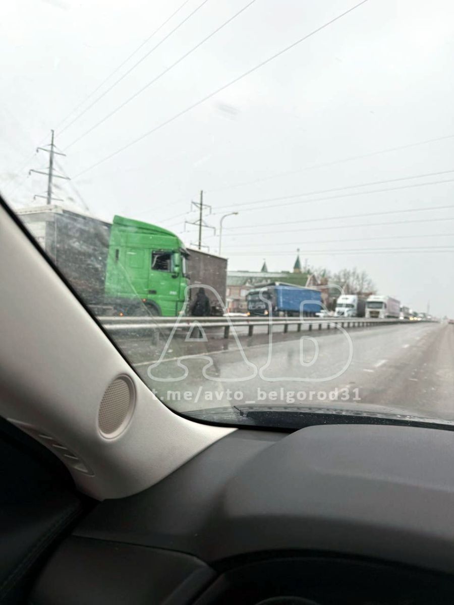 В Белгороде случился транспортный коллапс. Выезд из города заблокировала фура.