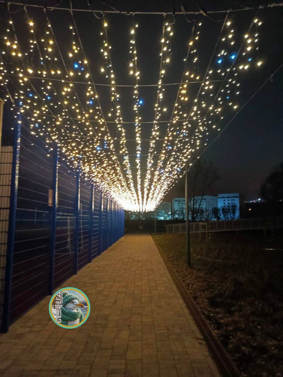 По данным источника, в преддверии праздника здесь установили световую растяжку в виде сияющих звездочек. Локация доступна неподалеку от спортивного кластера.