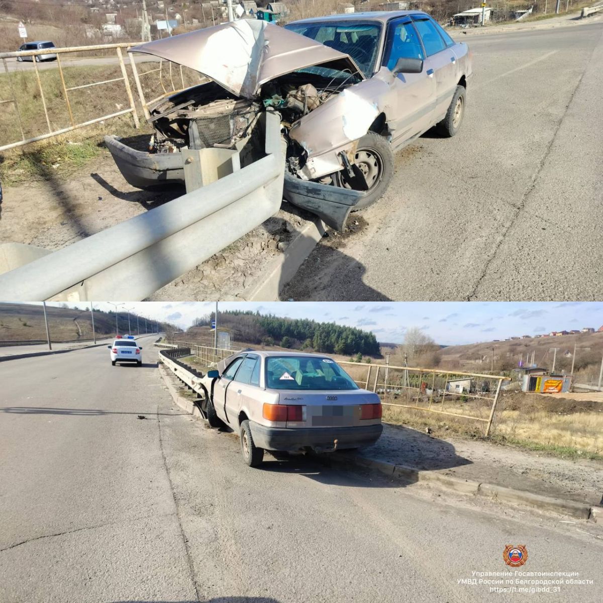 В Белгороде случилась авария. Машина врезалась в дорожный барьер.