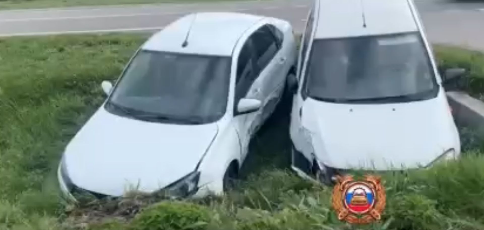В Белгородской области случилось очередное ДТП. Два автомобиля столкнулись и вылетели за пределы проезжей части.