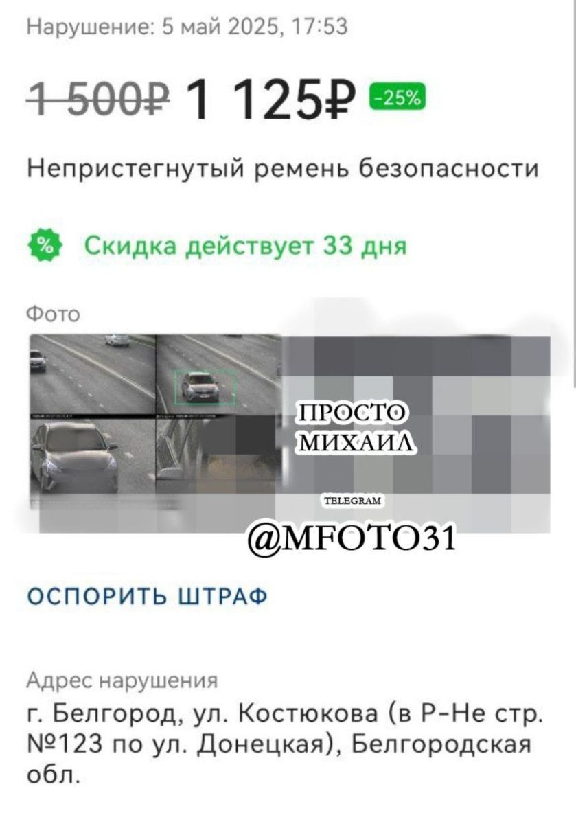 В Белгороде камера штрафует водителей и пассажиров за непристегнутый ремень безопасности. Об этом сообщает телеграм-канал «Просто Михаил».
