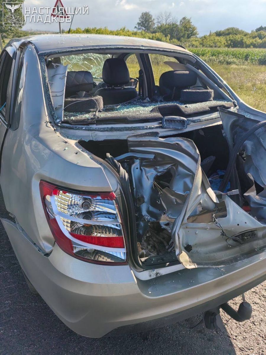 ЧП случилось в селе Борки Валуйского округа. Дрон ударил по автомобилю и смял его.