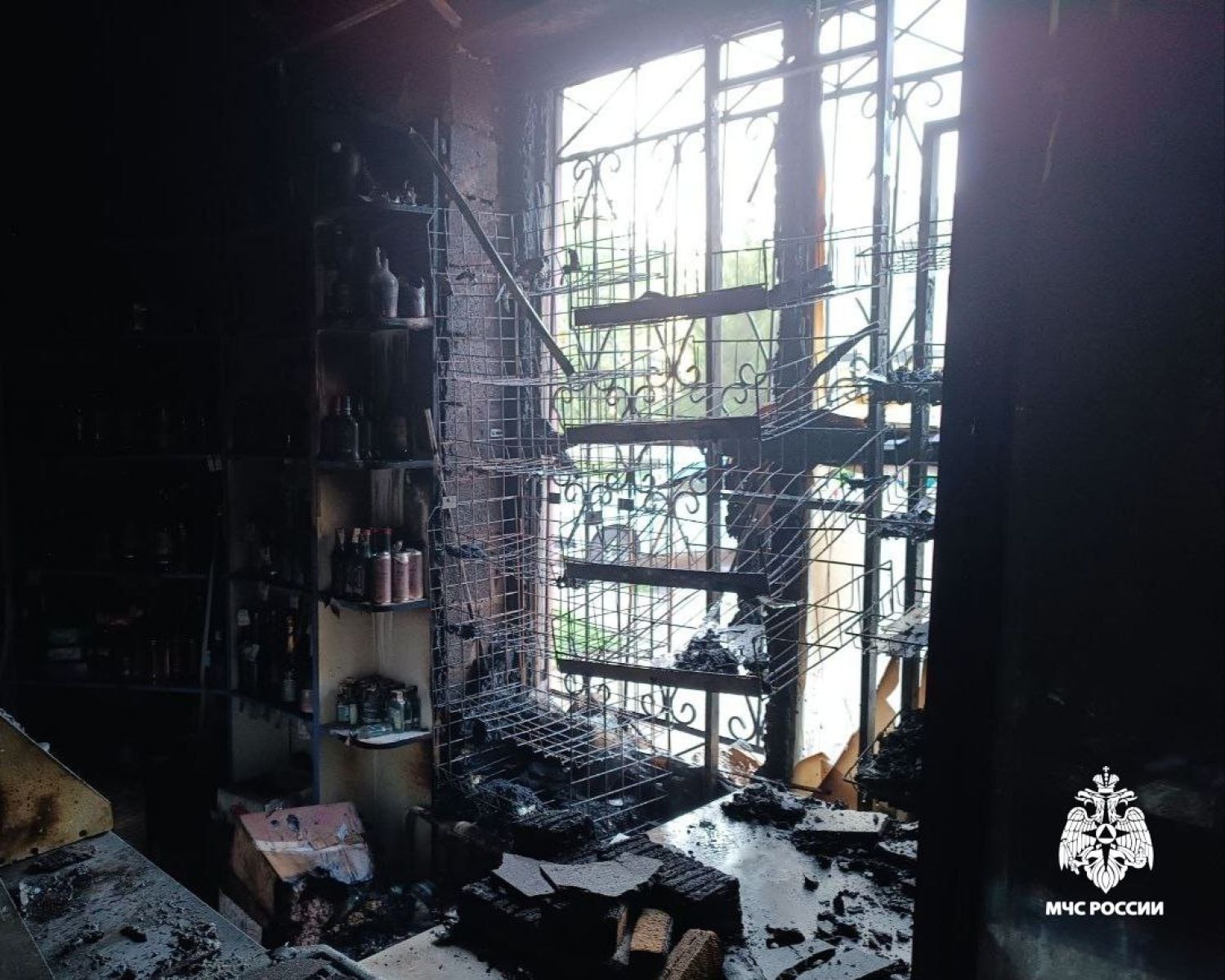 В результате возгорания в торговом зале магазина огнём повреждена стена. Выставленные на полках продукты сгорели.