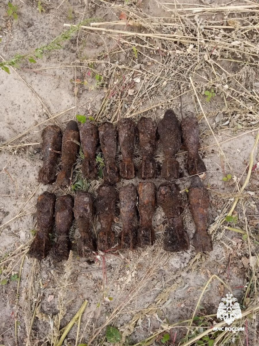 Специалисты идентифицировали находку как 16 артиллерийских мин, изготовленных в период Великой Отечественной войны.