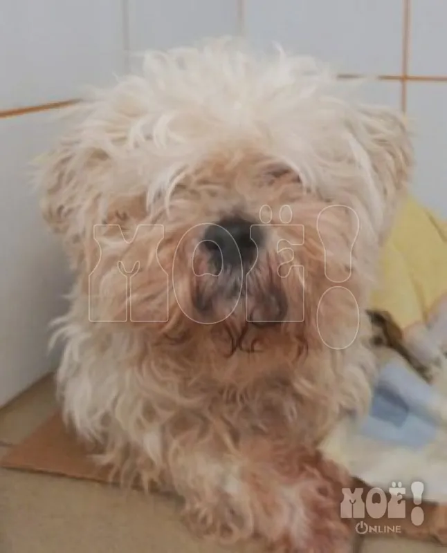 Старенькую собачку подобрали на улице, сейчас она временно в ветклинике. Собака хорошо кушает и прекрасно терпит до выгула.