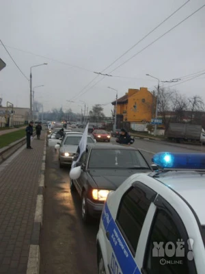 От таксопарка на улице Мичурина колонна машин с траурными лентами двинулась по дорогам областного центра. Участники автопробега по пути раздавали листовки с обращением к водителям «Не убий – пропусти пешехода!», «Не убий – снизь скорость!».